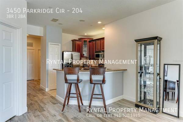 $500 off the first months rent. "Apply within 24 hours of your conducted showing, and once approved you will be credited your application fees towards your first full months rent!" Ask about our security deposit alternative to ease the upfront move-in cost! Don't miss out on this charming 3-bedroom, 2-bathroom condo in the gated community of Parkridge! Move in day will be a breeze, as this condo is available furnished or unfurnished and on an annual lease! You will not have to worry about ever running out of room with over 1,400 sq. ft. of living space in this condo, ideal for the entire family. The kitchen features beautiful dark wood cabinets and granite countertops, with plenty of space for any aspiring chef! Appliances include a stainless steel refrigerator, range, microwave, and dishwasher. The open concept living area and large windows throughout make this unit feel spacious and bright all year round, letting in all the sunshine Florida has to offer! Neutral paint, tiled bathroom floors, and laminated wood flooring throughout this space makes decorating a breeze! Enjoy a relaxing day in your primary suite, complete with a walk-in closet, an en-suite bathroom, and access to your very own balcony with views of the community lake. Two additional bedrooms offer the the perfect amount of space for your extended family or for turning it into a home office space! Don't forget to enjoy sunny days by the water as this unit is just a short walk to the community pool! You will have the convenience of doing laundry at home with a washer and dryer available in the unit. Your car will stay safe and cool from the warm Florida days in the spacious garage, big enough for additional storage as well! Trash, water, pest control and basic cable and internet included in rent. Sorry, no pets.