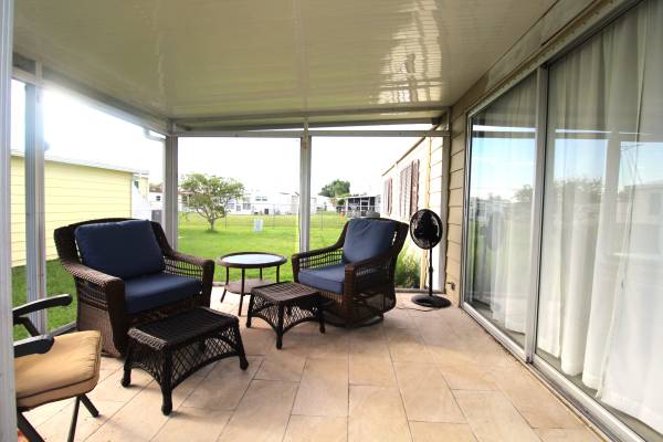 Apply within 24 hours of your conducted showing and once approved you will be credited your application fees towards your first full month's rent! Welcome home to this charming 2-bedroom, 2-bathroom mobile home in the community of Camelot Lakes! Moving day will be a breeze, as this home comes fully furnished! You will not want to miss out on this home's amazing features, with tile flooring, ceiling fans in every room and large windows throughout, making every space feel light and vibrant. This property boasts impressive updates, including a recently replaced roof and a brand-new A/C system, ensuring comfort, efficiency, and peace of mind for years to come! The galley inspired kitchen offers plenty of counter and cabinet space for all and includes all major appliances, including a refrigerator, range, microwave, and dishwasher. The open concept living and dining room create the perfect space for entertaining your friends and family and is beautifully decorated throughout! The primary bedroom features a large walk-in closet, and en suite bathroom, adorned with tile wall detailing, a walk-in shower with seating, and a separate vanity space! A spacious guest bedroom and bathroom complete the inside of this home. Continue the entertaining outside in the screened in lanai space, complete with lounge seating- perfect for enjoying that wonderful Florida weather and relaxing after a busy day! Laundry room located in carport shed for your convenience. One small pet considered, 20lbs max., no dangerous breeds. Trash, and lawn care are all included in the rent, so you can spend more time enjoying the fabulous community amenities. Persons as young as 45 may reside in the unit as long as one other occupant residing in the unit is 55 years of age or older.