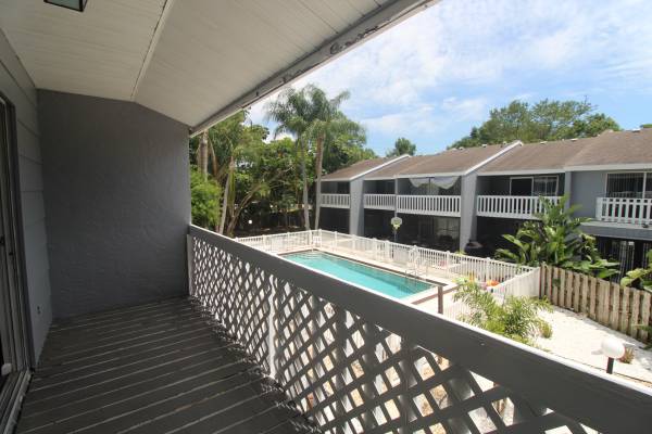 MOVE IN SPECIAL! Apply today and once approved, you will receive $500 off your first month's rent! This 2-bedroom, 1.5-bathroom townhouse is just what you've been looking for! *Photos of similar unit. * Complete with neutral paint, plenty of natural lighting, wood plank laminate flooring upstairs, and tile flooring downstairs makes decorating a breeze. Downstairs you will find the kitchen, which separates the dining and living area for a more intimate setting. The kitchen includes hardwood cabinets, granite countertops, and appliances, including a refrigerator, microwave, dishwasher, and range. A half bathroom and lanai access completes the first floor of this townhome. On the second floor you will find the spacious primary bedroom with private balcony, a full bathroom, a guest bedroom, and a laundry closet for extra convenience. This beautiful unit has a large, screened lanai, only steps away from the community pool- perfect for relaxing and unwinding after a busy day at work! Pets considered, 35lb weight limit, no dangerous breeds. Trash and lawn care included in the rent.