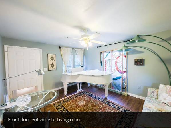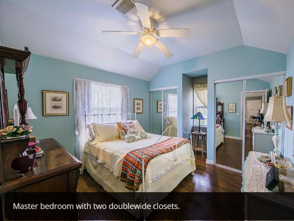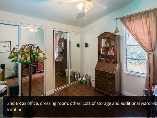 Recently updated modern bathroom (see pics), glass doored shower, built-in linen tower, large vanity mirror (not shown), Master BR with two closets, vaulted ceiling, suitable for "queen" bed or smaller. Bedroom 2 sometimes used as office or dining area. 10 ft of closet storage that has 4 sliders access. Contact me on blessmem19 @ hotmail.com