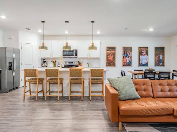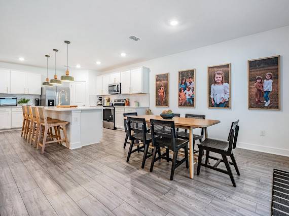 Welcome Home! This spacious two-story home offers 4 bedrooms, 3.5 bathrooms, a downstairs flex space with double French doors (ideal as an office or playroom), an oversized loft, and a two-car garage. The primary suite is on the first floor, while the additional bedrooms and bonus space are upstairs, providing plenty of flexibility for family, guests, or work-from-home needs. The open layout features a modern kitchen with white shaker cabinets, quartz countertops, and stainless steel appliances. The dining area flows seamlessly into the living space, with sliding glass doors opening to a screened lanai and fully fenced backyard overlooking a peaceful conservation view—perfect for kids, pets, or relaxing outdoors. Enjoy resort-style amenities at Isles at BayView, including a pool, clubhouse, game room, food truck nights, and regular community events. Conveniently located near parks, beaches, shopping, dining, and just 35 minutes to Downtown Tampa.