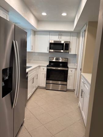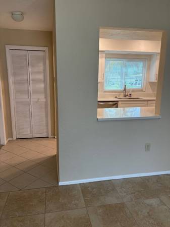Spacious 2 bed 2 bath split plan duplex separated by private laundry and carport. New kitchen with quartz countertops and stainless appliances. All tile flooring no carpet, new blinds. Private screened lanai, laundry room with storage area. Community pool available. One indoor cat allowed. No smoking. First month, last month, security deposit and back ground check required. Available now.