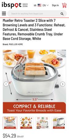 Mueller RetroToast 2 Slice Toaster - White/Stainless Steel - (New)