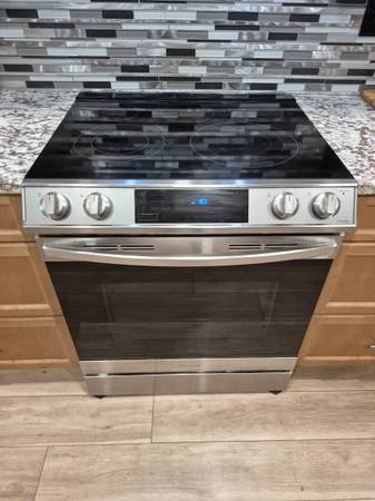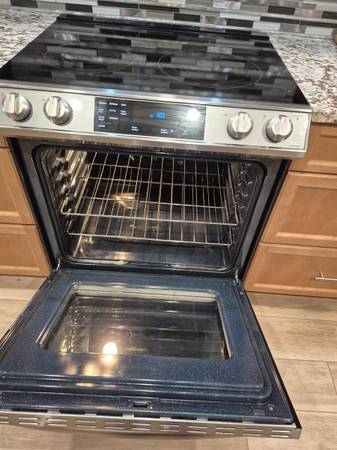 3 yr old Samsung stainless slide in range w/convection oven and air fryer. Excellent condition. All in working order. New 1400.