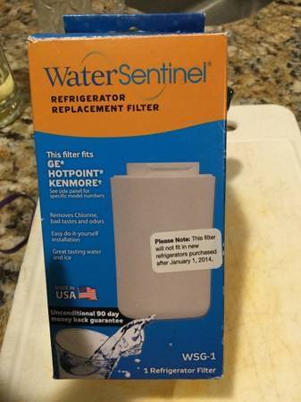 New in the box, sealed in clear wrap, refrigerator water sentinel filter. Fits GE, High Point, Kenmore and possibly others. Model number WSG -1. See pictures for details. Recently sold my house and the filter does not fit my fridge at my new home. Asking $5 ea