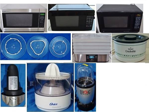 Pic 1 is just the cover pic of the group, may not line up with the individual listings as things come and go. Items 1, 2 & 3) NEW ADDITIONS. 3 countertop microwave ovens, all work fine: