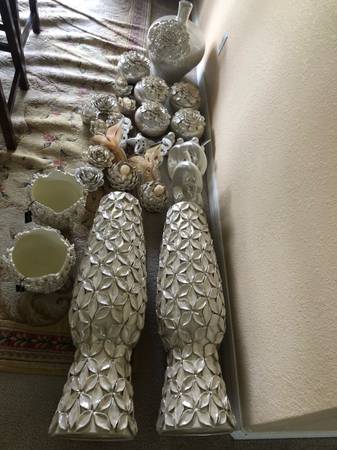 Tall Floor Vases size 32.5. Price is just for two vases. Selling my colection. Last four pictuers show more items availble for sale if you are interestad.