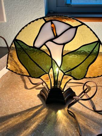 Offering four different styles of handcrafted stained glass lamps inc. the stands and electric parts included. These are real stained glass that was manufactured in America- the real deal. Thank you...