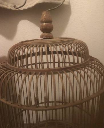 Without the bird!! This is an old bird cage that was built to last, it’s a piece to add to any room Must see to appreciate..
