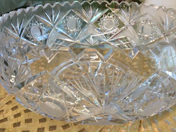 Gorgeous large European hand cut crystal bowl. Size:W11'',H5",very heavy, awesome design. It will be nice addition for your luxury home! Like new condition. Pet and smoke free home. Please call....