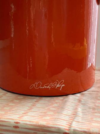 Bring timeless Hollywood glamour to your bar with this authentic mid century modern ice bucket designed and signed by Dorothy Thorpe, the celebrated American glassware and barware designer known for her elegant and minimalist style. The bucket has a sleek orange vinyl exterior in classic mid century style. Perfectly sized for entertaining or display on a vintage bar cart. In excellent vintage condition with light wear consistent with age, and no scuffs, scratches or odors. A sophisticated additional to any mid century, Hollywood Regency or retro barware collection. Dorothy Thorpe pieces are increasingly sought after by collectors and design enthusiasts alike!
