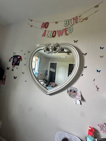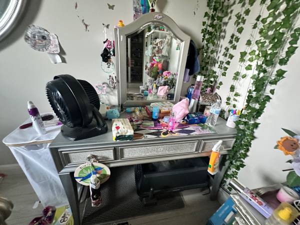 Full size Disney bed with trundle, mirror, book shelf, night stand and vanity (MATTRESS NOT INCLUDED)