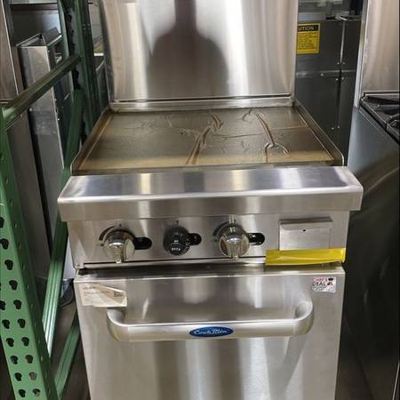 New discontinued all stainless heavy duty 24" range with 24" flat griddle in Natural gas. In stock. We stock a wide variety of configurations of commercial ranges made for business use only, no...