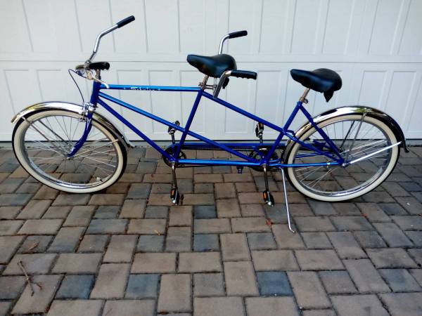 Very clean Schwinn Tandem "Twinn" Cruiser with 26 x 2.125 wheels from the 1960's. Single speed coaster brake and front handbrake. This one is in like new condition and requires nothing but a new owner. All the chrome is perfect. Each time you ride it, you will have a fun adventure. Please call.