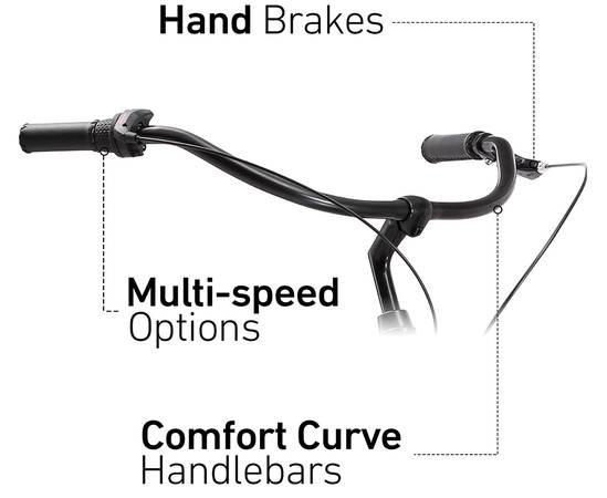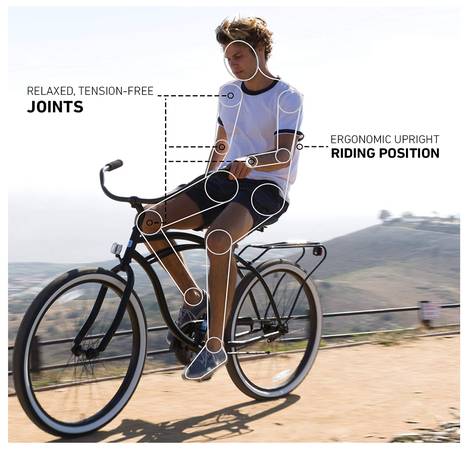 * Upright riding style keeps your back and shoulders comfortable; dual-spring saddle and wide cruiser handlebar with foam grips