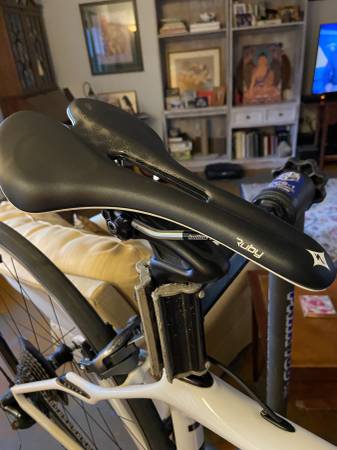 Carbon fiber frame, fork and seat post, excellent bike very clean and low miles, 54cm women's bike in perfect working condition !