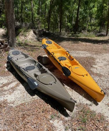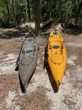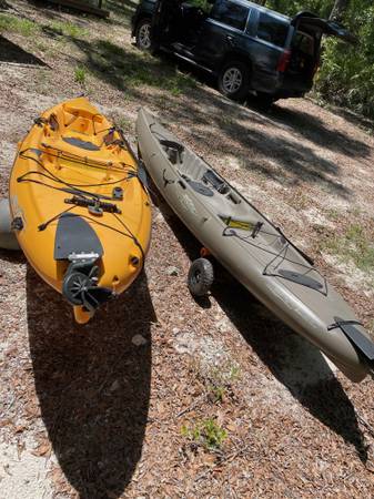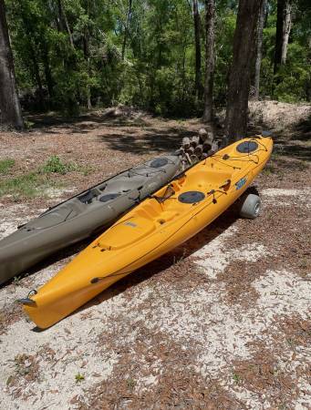2 Hobie Mirage Revolution Foot Pedal Kayaks for Sale! Complete with seats, paddles, foot peddles, wheels for transport and life jackets. Gently used and in good condition. Have been stored inside, out of the weather. These brand new are currently over $3500 EACH! Asking $3000 for the whole package. Will only sell as a package. Cash only!