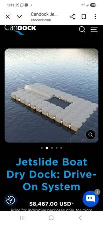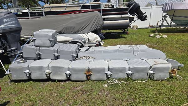 Candock floating drive on dock, 26 cubes, 1 jet slide, 1 black filler panel, all nuts and bolts included. NOT INCLUDED, ANY ANCHORING RIGGINGS OR STEEL POLES $3200.00 please leave a message I...