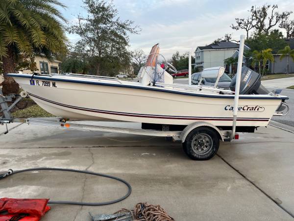 16’ cc cape craft with a 2006 70TLR Yamaha 2 stroke. Brand new hydraulic steering, brand new perko battery switch professionally installed. 7” Humminbird Helix depth finder with side scan and GPS. Magic tilt trailer with swing tongue and guide poles.