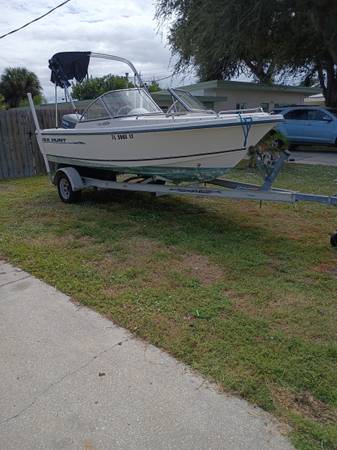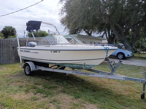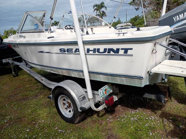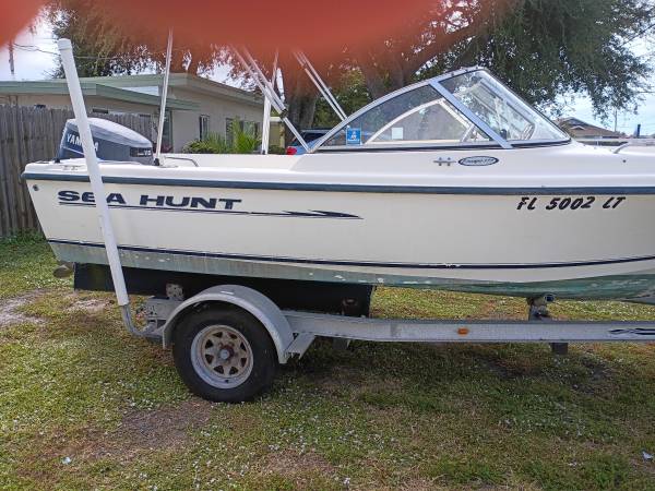 I have a 17.5 ft 2002 Sea Hunt Escape 175 for sale in good condition. We are located in the Englewood area. It has a Yamaha V4115 motor on it. Fish finder is included. Asking $7,000 or best offer. Yes, it floats and no holes. No, I will not give boat rides. If interested please call or text me.