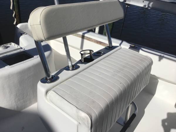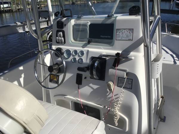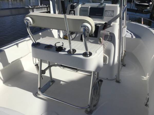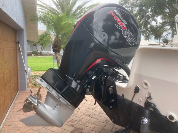 Two owner boat with factory new powerhead July 2025 with 10 hours and 1 year transferable warranty. Engine is a 2022 25” Mercury 150hp Pro XS with 120 hours. All annual maintenance completed on time with Mercury parts and lubrication. Recently completed 3 year. Engine always flushed with freshwater and Salt Off. Great all-purpose boat: wide beam for stable platform, high freeboard for offshore security, 19 degrees dead rise for nice ride in swells and chop, and shallow draft for inshore.