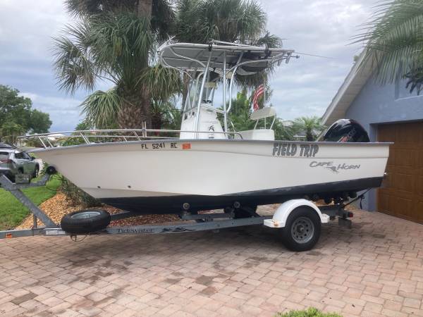 2004 Cape Horn 19 Offshore is a huge 19' center console, built like a tank, with a lifetime transom warranty, new hull design with bigger bow flare and reverse chines for a drier ride, poly tank, and redesigned transom layout. Construction features High Strength Hull, No Wood, Foam Core Transom, Foam Filled Inner-Bottom, Foam Core Fiberglass Stringer System, and High Grade NPG Gelcoat. Length 19'6", Dry Weight 2,200 lbs, Beam 8'6", Max. Load 2,500 lbs, Draft 18", Max. H.P. 200, Deadrise 19°.