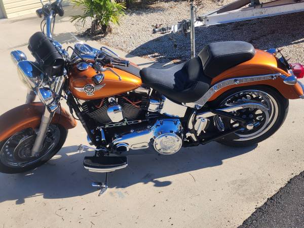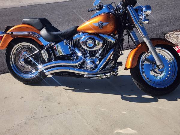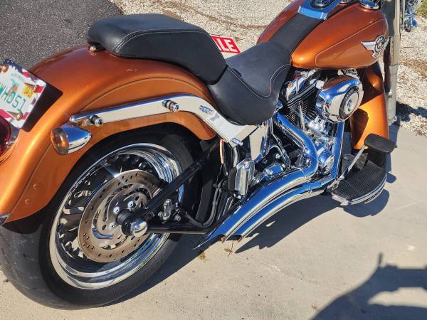 Like new 2014 Harley-davidson Fatboy Custom with 3k miles Original owner over 8k in chrome extras . 103ci Vance and hinse pipes. Full Chrome extras. Just don't ride. Allways garage kept Coverd. Beautiful burnt orange color. New tires and battery. Was asking 14.500.00 drop to $10.500.00 . Will consider Trade for Bayboat or Newer Golf Cart and cash. Please no junk. Located in Englewood Florida