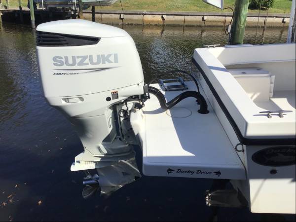 One-owner Dusky 278 Open Fisherman center console with Suzuki DF300AP with just over 400 hours and 8 months of engine warranty remaining: July 2026. Every maintenance item performed early, outboard always flushed after use, and boat washed and waxed frequently. Great riding, economical boat perfect for diving and fishing. Boat is used year round, 2 to 3 times a month, running 35-60 miles offshore. Always dependable, nice ride even with 3-4 foot waves. Moving north reason for selling.