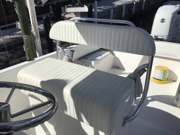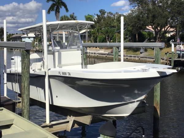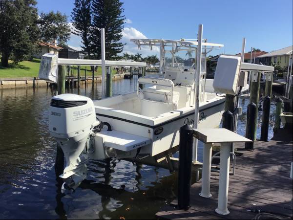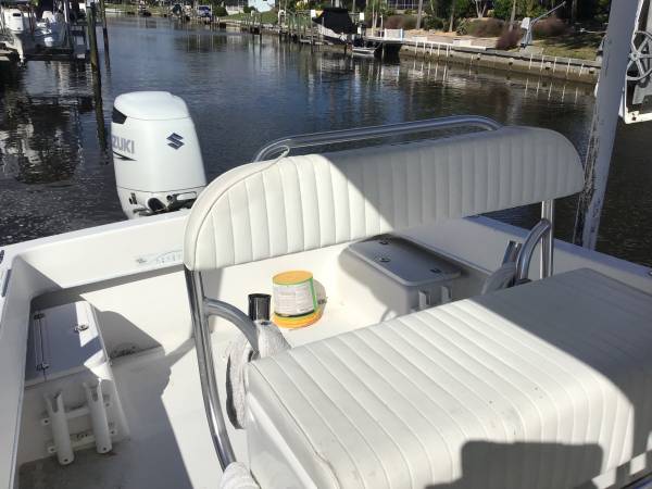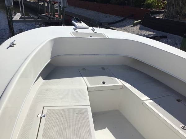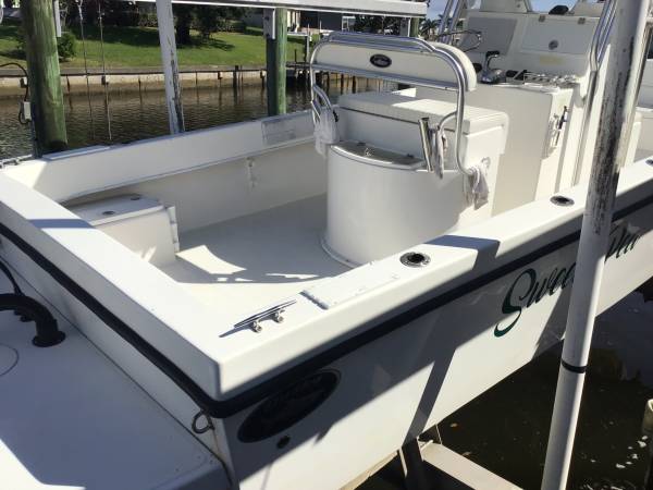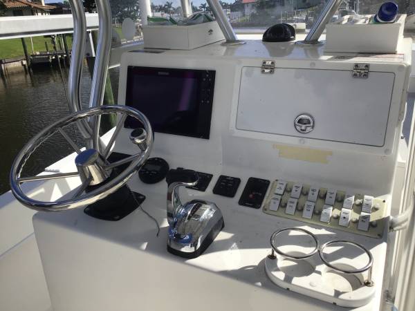 Over $30k in factory upgrades: Simrad 12" Fishfinder, Strike Lines chip SW FL plus over 100 personal fishing spots, deluxe leaning post with livewell and backrest, fiberglass 4 post t-top, 3 panel glass enclosure, deluxe tall standup console, insulated forward fish box, twin battery system, trim tabs, spreader lights, T-top rod holders, extra rod holders, bronze thru hull transducer, stereo, and more. Also including satellite phone, EPIRB, all safety equipment, and some fishing accessories. No trailer.