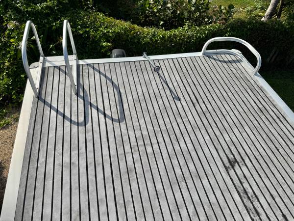 Spacious Lounging Areas: Dual couches up front & L-shaped lounge in rear & upholstered sunning area in back over storage and fuel compartment (see pic)