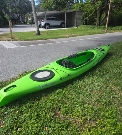 Pungo 140 green kayak in very good condition. Includes a Werner paddle