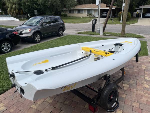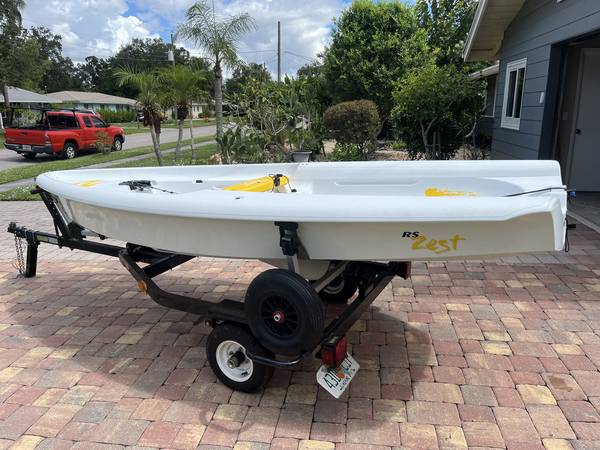 2023 RS Zest dinghy with trailer, dolly, mainsail + jib. Like new condition. See: https://www.rssailing.com/project/rs-zest/ for details of features and specifications.