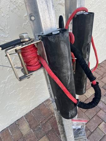 2 heavy duty slides, with low stretch cleat line and Kevlar line shields and ratchets.