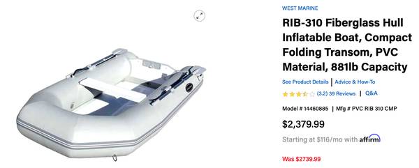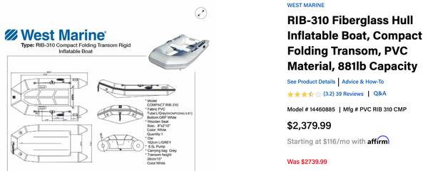 Rated for a 10HP short shaft motor. This boat is currently for sale at West Marine for $2,499.