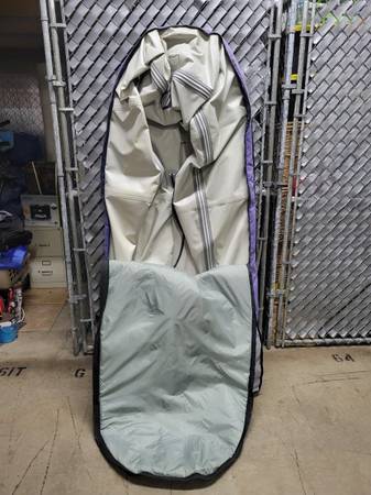 Like New with Title, 10’ 2” RIB with fiberglass bottom & a folding transom so that, for storage, folds into a compact shape that’s only 7 1/2' long and 13" high, so it fits where other RIBs can’t. A Huge advantage! This boat has been used twice and has been in temperature controlled storage ever since.