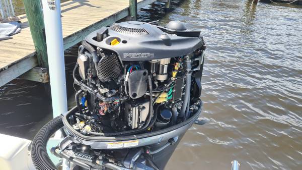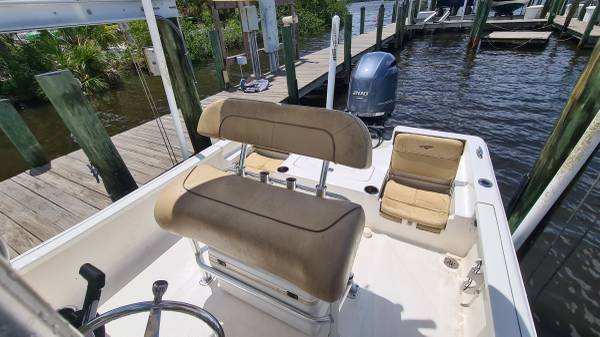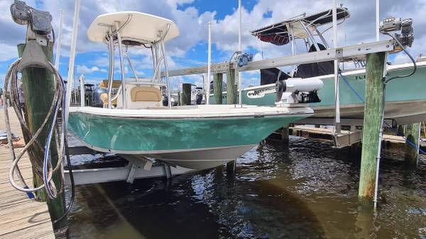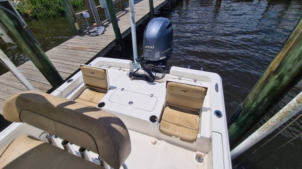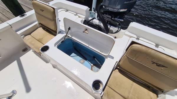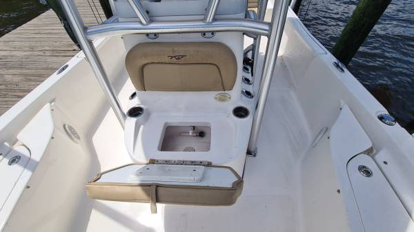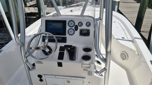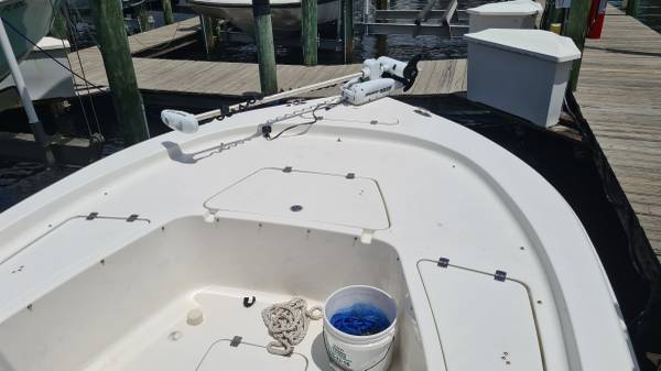 The Tidewater 2200 is set up for fishing in all kinds of water. She is powered by a Yamaha Four Stroke 200HP motor with less than 200 hours of use, mounted on an Atlas jack plate for shallow water. Also has a MinnKota iPilot trolling motor on the bow and a power pole. She has a baitwell, built-in tacklebox, plenty of rod holders and storage boxes. The Garmin GPSmap 7610xsv has both DownVu and SideVu. There is a dual battery system with switch. Includes leaning post cover and motor cover. Does not have a trailer, but we can help you find one or transport her to you.
