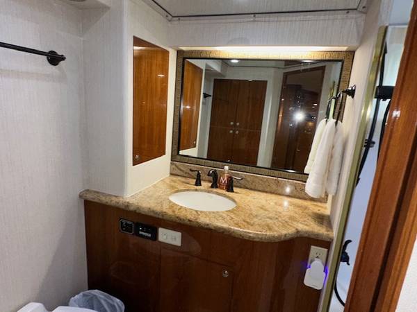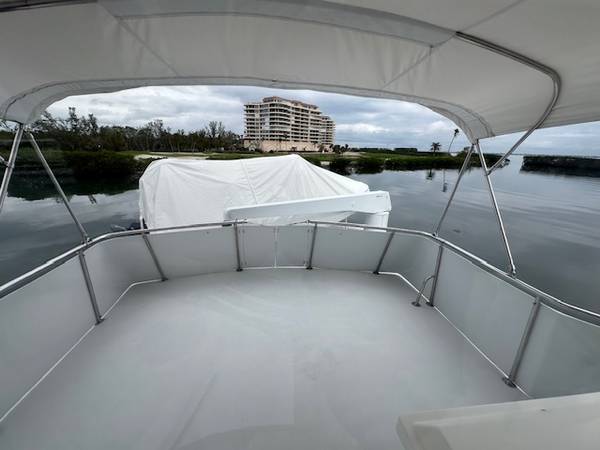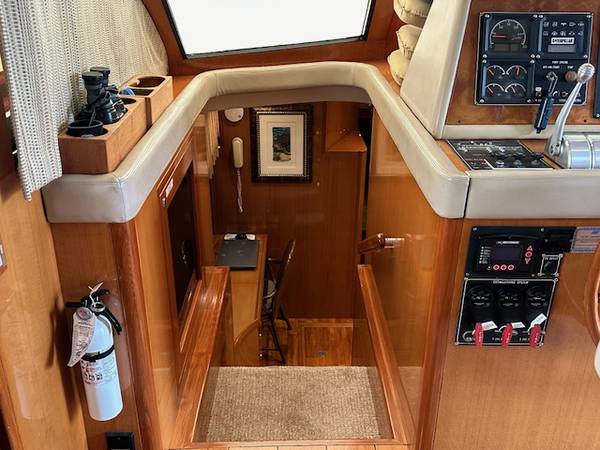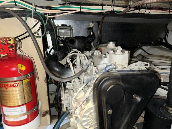 Beautiful 60' motor yacht has 3 staterooms and 3 heads, a full galley and salon, gorgeous cherry wood floors and accents, everything maintained. Fully stocked upper helm has newer electronics, is enclosed in eisenglass, and has plenty of seating for family and friends. There is also seating and storage on the large bow. There is an aft helm for easy maneuvering. Inside is a spacious salon, full kitchen and dining area, study with seating that converts to extra sleeping, and 3 staterooms and heads: a large primary suite aft, a crew's cabin with two singles across the hall from the engine room, and a secondary suite in the bow. She is powered by two Cat 3406 800HP motors, 3980 hours, and will run 22 kts. The current owner maintains her well; recent work includes newer electronics, new horns, 4 of 6 A/C units upgraded, stabilizer redone, anchor pulpit redone, new chain on windlass, new cushions on fly bridge, new freezer in salon and there are lots of extra spare parts, She has been completely painted in the last few years, including bottom paint which was recently rechecked.