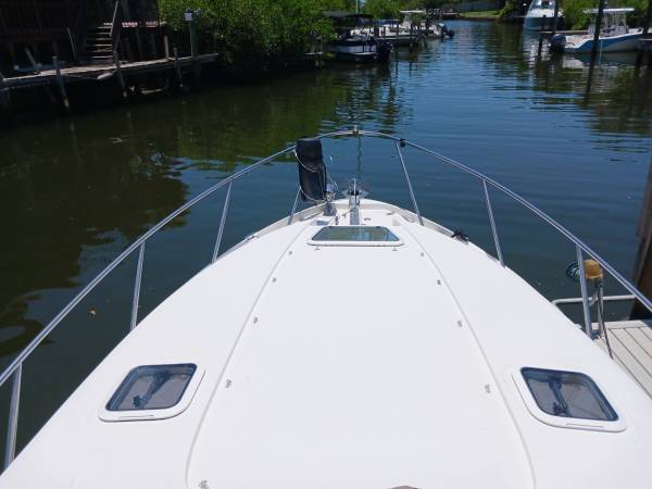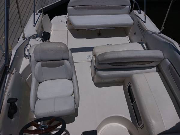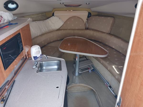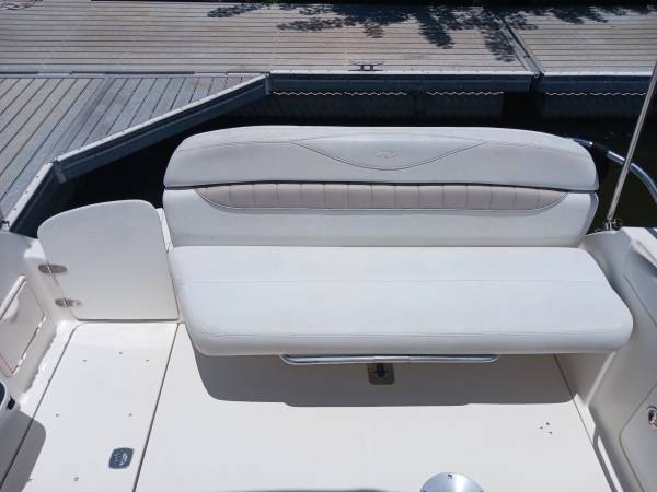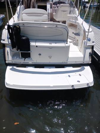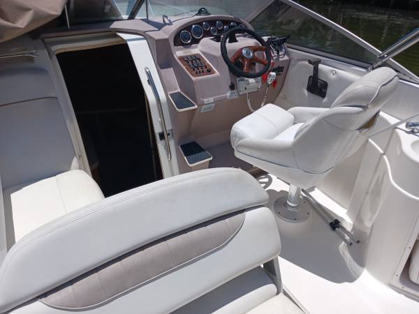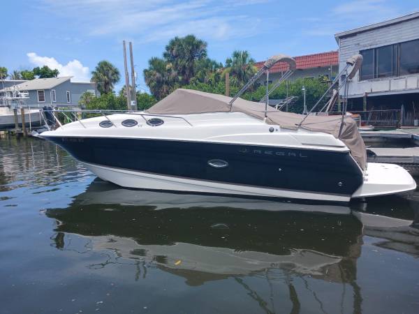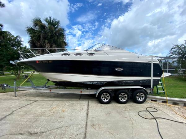 The Regal Commodore has everything you need for a weekend away! This 27'+ trailerable boat has a recently rebuilt Volvo Penta 375HP motor, fuel injected with dual prop. Her cockpit offers lots of seating, including a lounge. The cabin has a v-berth salon and aft cabin, enclosed head and full galley with sink, electric stove and refrigerator. To make your stay even more comfy, there is A/C, a generator, battery charging system, freshwater washdown and a variety of nice covers - 2 bimini tops, full camper cover, eisenglass enclosure and full mooring cover. She has a 2005 Performance 3-axle aluminum trailer in good condition.