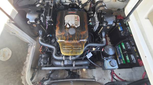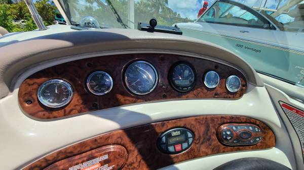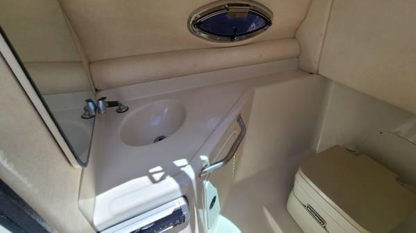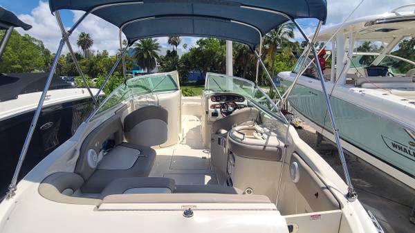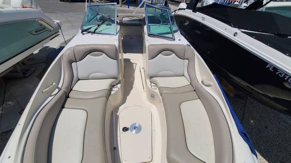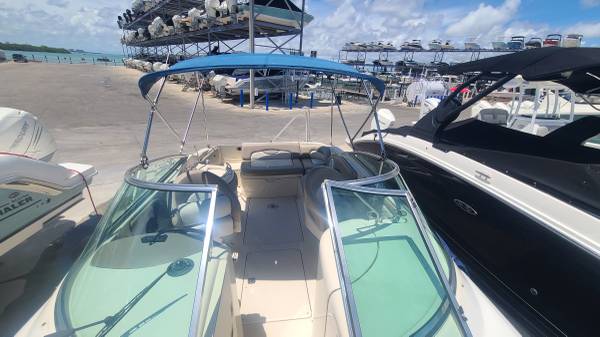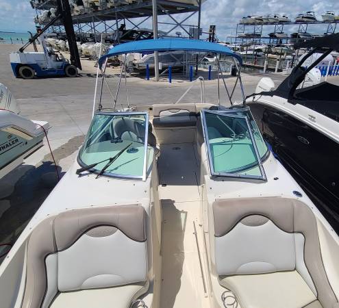 The 270 Sundeck is more than just a deck boat; it has features of a bowrider and rides like runabout cruiser! This 2004 is in excellent condition and powered by a newer Mercruiser 383 Stoker 350HP motor with only 229 hours of use. She has lots of comfortable loungers and seating, an enclosed head with a sink and storage, freshwater washdown, transom door and bow access, both with swim ladders. Includes covers, safety equipment, Garmin GPS (mount shown). Does not have a trailer, but we can help you find one or transport her to you.