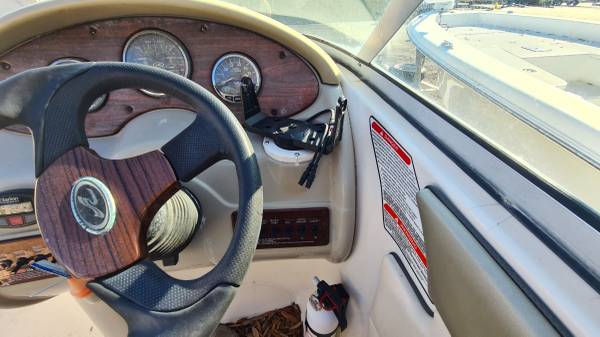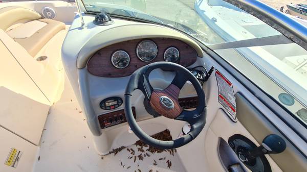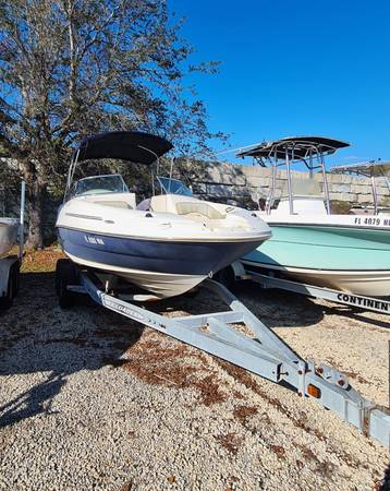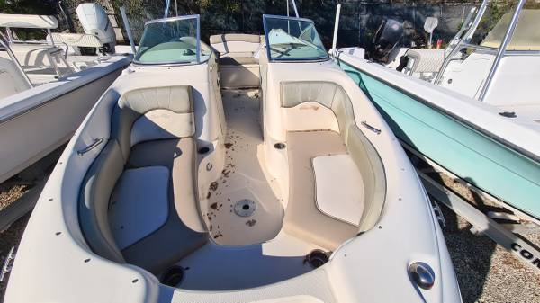 This 2005 Sea Ray deck boat has a 2008 220HP MerCruiser engine with only 276 hours of use! There is a huge swim platform, making her 21' overall length, access to the stern via transom door, lots of seating, a bimini top, cooler, stereo and lots of storage. She needs a replacement hatch cover for the bow anchor/ladder hole, and some TLC to make her shine! Does not have a trailer, but we can help you find one or transport her to you.