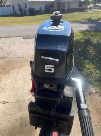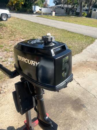 Mercury 5HP Outboard Tiller Weighs 45 Pounds 2 stroke short shaft. The motor has an internal fuel tank or you can use an external gas tank.,Starts easily runs great. Water ready Fully serviced new fuel lines , new spark plugs.