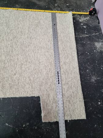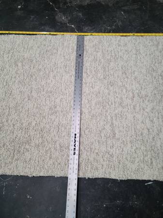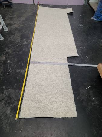 I had to order a full 12' piece of marine carpet to get the 2 small cuts I needed for my boat. This is what was left over and it is a decent size section. The measurments are in the pictures. The backing is a heavy-duty, thick mass backing. The color is a very light tan with medium tan or taupe highlights.