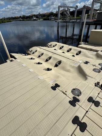 Selling a complete, 5-year-old EZ Dock system, new cost is over $20,000. This is a durable, well-maintained package that is ideal for maximizing your time on the water. The system is engineered to float up and down with the tide, ensuring easy access for your watercraft at all times.