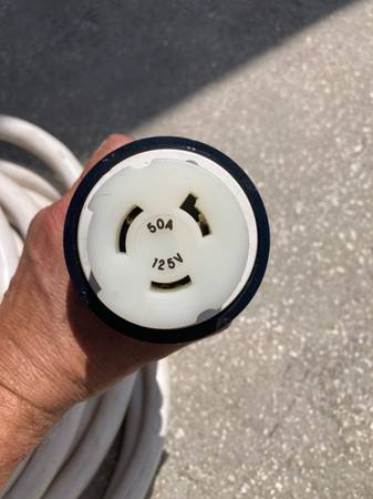 50’. 50 amp shore power cord. Like new. New cost around $750