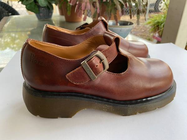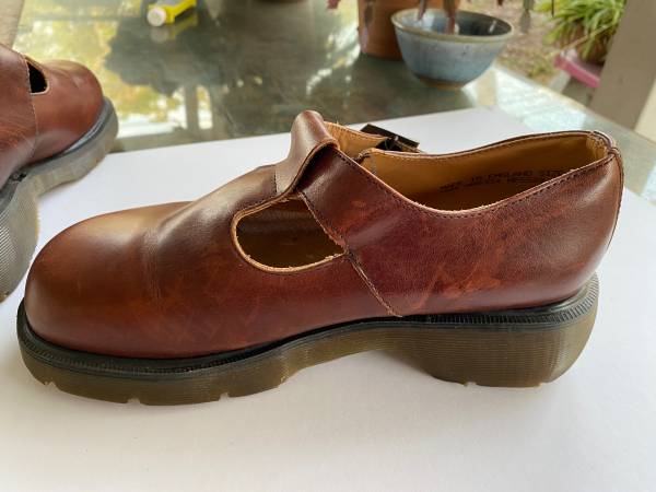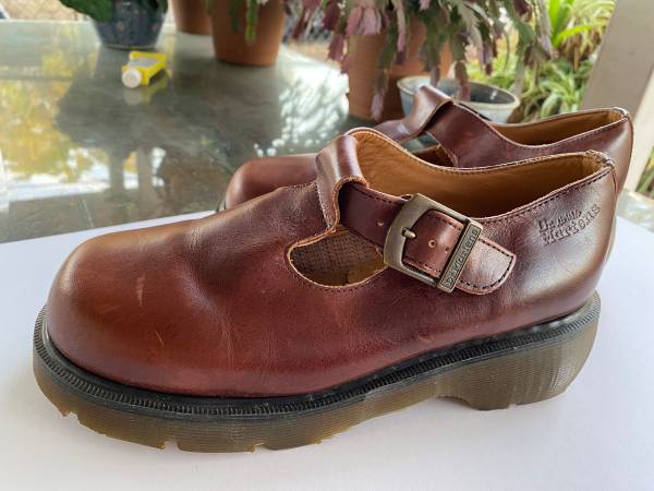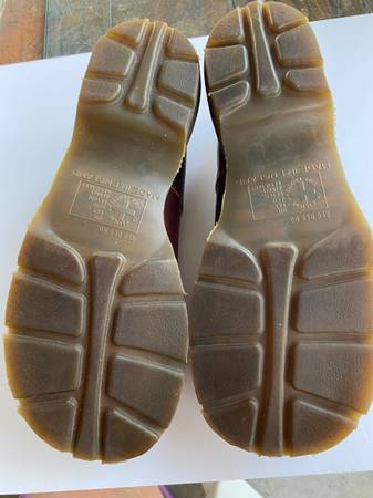 Made in England. Orangish red patina on smooth leather. 2 1/4 inch chunky soles. Single buckle. Bottom of soles super clean. Original insoles fully intact interior print is legible. Leather does have consistent, lighter marks, and scratches, possibly the unique characteristics of the leather. Only worn a few times.