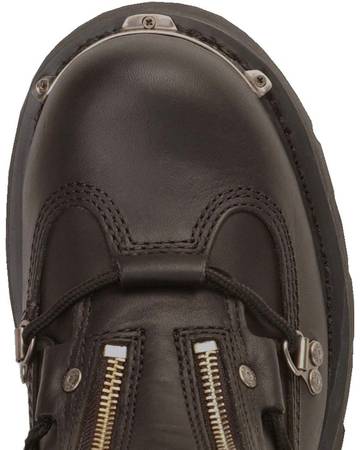 Harley-Davidson® Riding Appropriate* Men's Brake Light Black Leather Motorcycle Boots. The stylists at Harley-Davidson® and Wolverine® must have gotten together beforehand and decided to use a "no-holes-barred" approach for the design of the Brake Light style boot. The result: One of the most popular motorcycle boots available today. The uppers are made from full-grain leather with an oil-resistant rubber outsole. The boot features a comfortable full-length soft cushioned lining, affording hours of fatigue-free wear. Shaft height: 6.25'', Heel height: 1.5''. They also feature undeniably reliable and durable YKK® locking twin zippers for ease of putting on and taking off. One zipper wasn't enough, there are two. Harley-Davidson® metal badging is on the toe, and the heel. A metal V-Wing Harley-Davidson® Bar & Shield® is on the shaft. The boot's lacing is unique with logo metal D-Rings and riveted leather eyelets. The cuff is cushioned for prolonged comfort. Between the zippers is a second V-Wing metal Bar & Shield® logo. The soles are finished using Goodyear® Welt construction processes, adding years of use with proper care. Orange tread highlights and an orange Harley-Davidson® insert are present on the street side of the soles. These boots are riding appropriate. Welt construction, abrasion and oil-resistant, re-soleable footwear ideal for riding motorcycles. Made by Wolverine®, a Harley-Davidson® licensee.