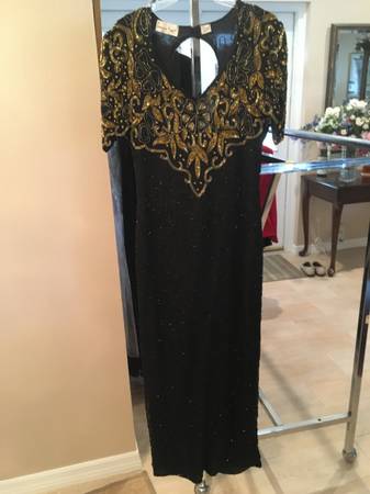 SEQUIN AND BEADED FORMAL GOWN - BLACK AND GOLD - clothing &...