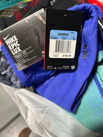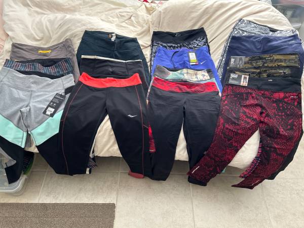 14 total. All women’s size medium. Nike, New Balance, Saucony, MPG, Prana. Barely or never worn and several with sales tags still on them. Take everything for $100