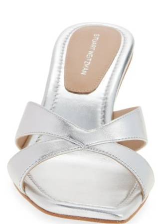 Glamorous Silver Slide Sandals by Stuart Weitzman