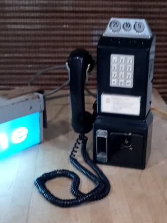 Includes "Pay Phone and Bell System Lighted Phone Booth Sign." Condition: Good; missing key; refer to the photos Overall approximate dimensions: - Telephone: 13-1/2" x 8" x 3-1/2" - Sign: 20-3/4" x...